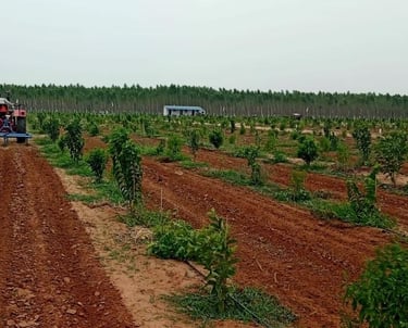 Nemila Farm Lands is a 100-acre agricultural property offering a unique investment with high long-term returns. The farm plots come in two sizes: 121 Sq. Yds and 242 Sq. Yds, with 30-foot-wide roads and an impressive entrance arch. The property is home to white sandalwood, guava, and custard apple plantations, providing both beauty and commercial value.